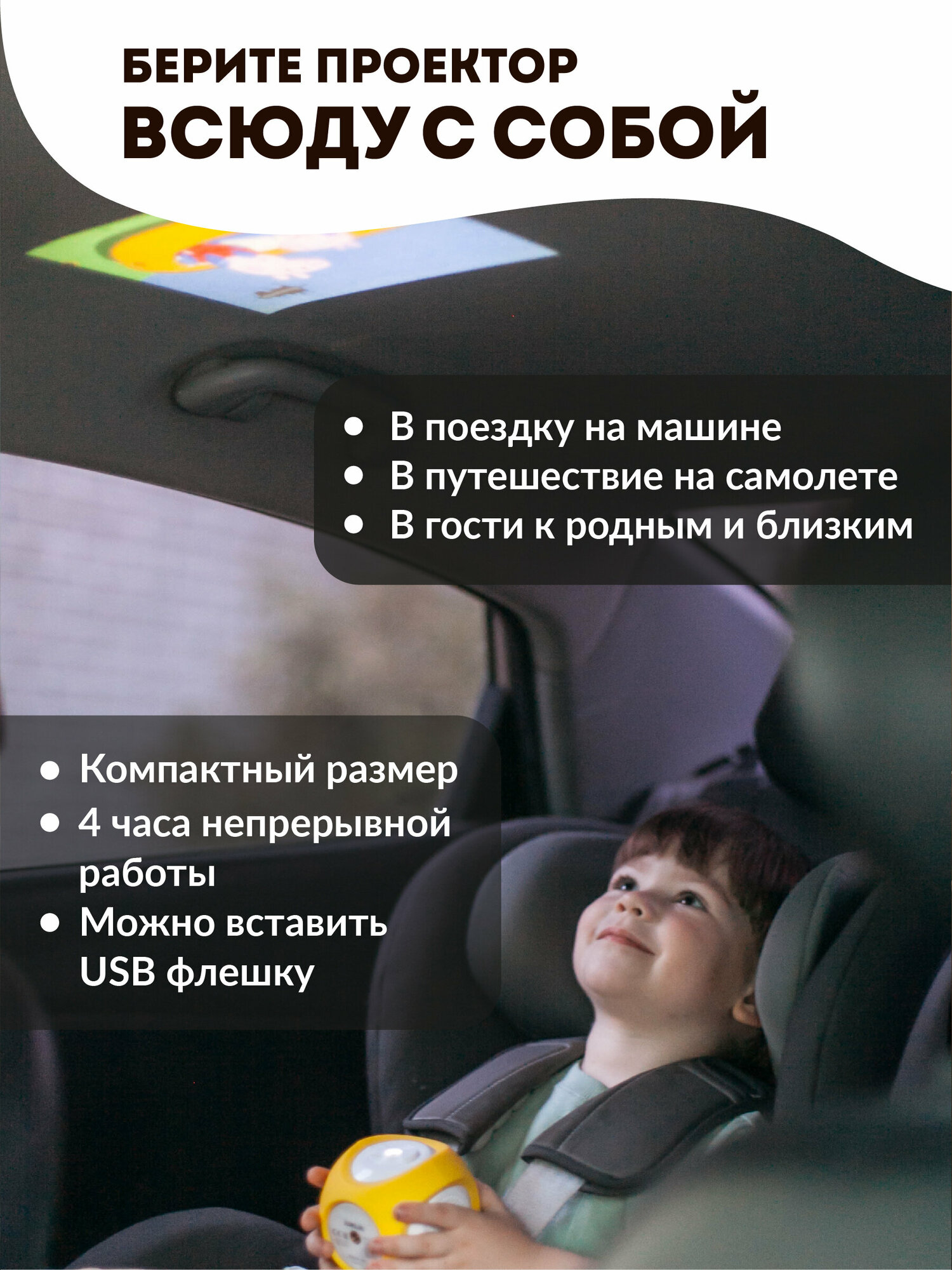 | Отзыв: | Покупкой доволен. Дарил ребенку на д.р., он и другая малышня в восторге. Брали в поездки, всегда этот проектор поднимал настроение. Покупал с комплектом встроенных детских сказок, они отличные, но до 6 лет, более старшим уже не заходят. |