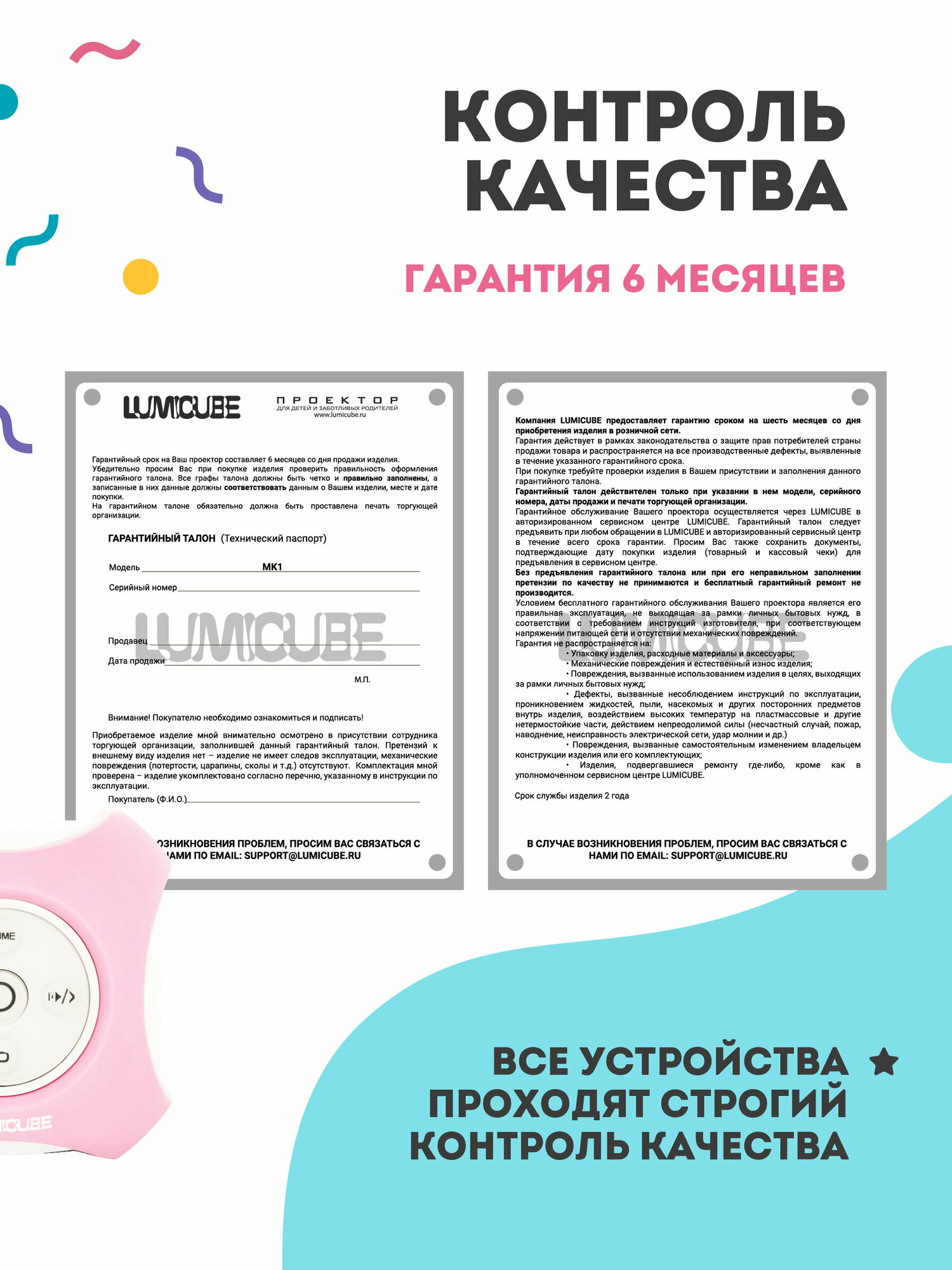 Детский проектор LUMICUBE (розовый)