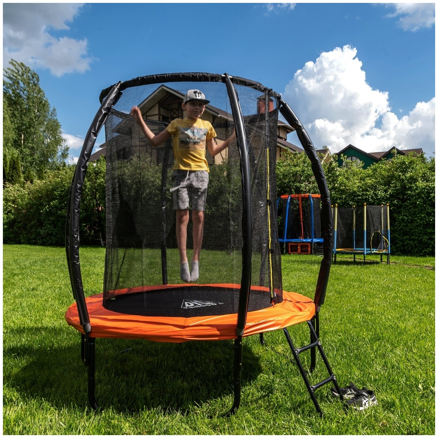 Батут DFC Trampoline Kengoo II 6FT-BAS-BO 183х183х230 см оранжевый/черный, внутр.сетка, лестница, оранж/черн (183см)