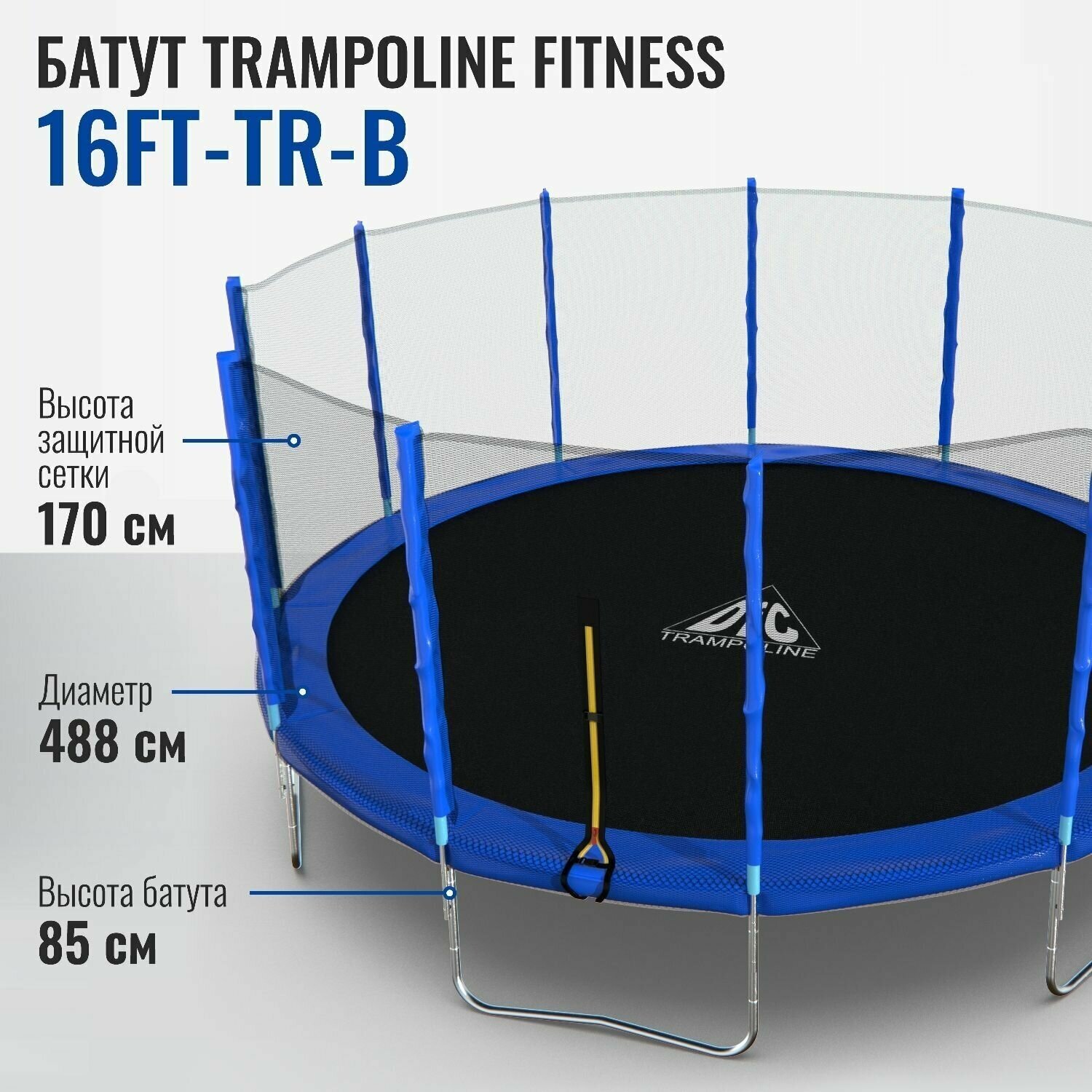 Батут с внешней защитной сеткой DFC Trampoline Fitness 16 футов - 488 см (синий)