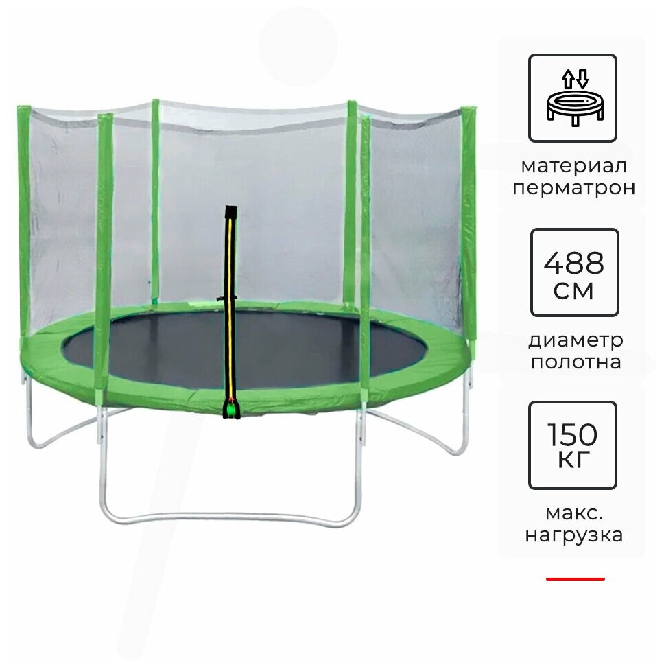 Батут с внешней защитной сеткой DFC Trampoline Fitness 16 футов - 488 см (зеленый)