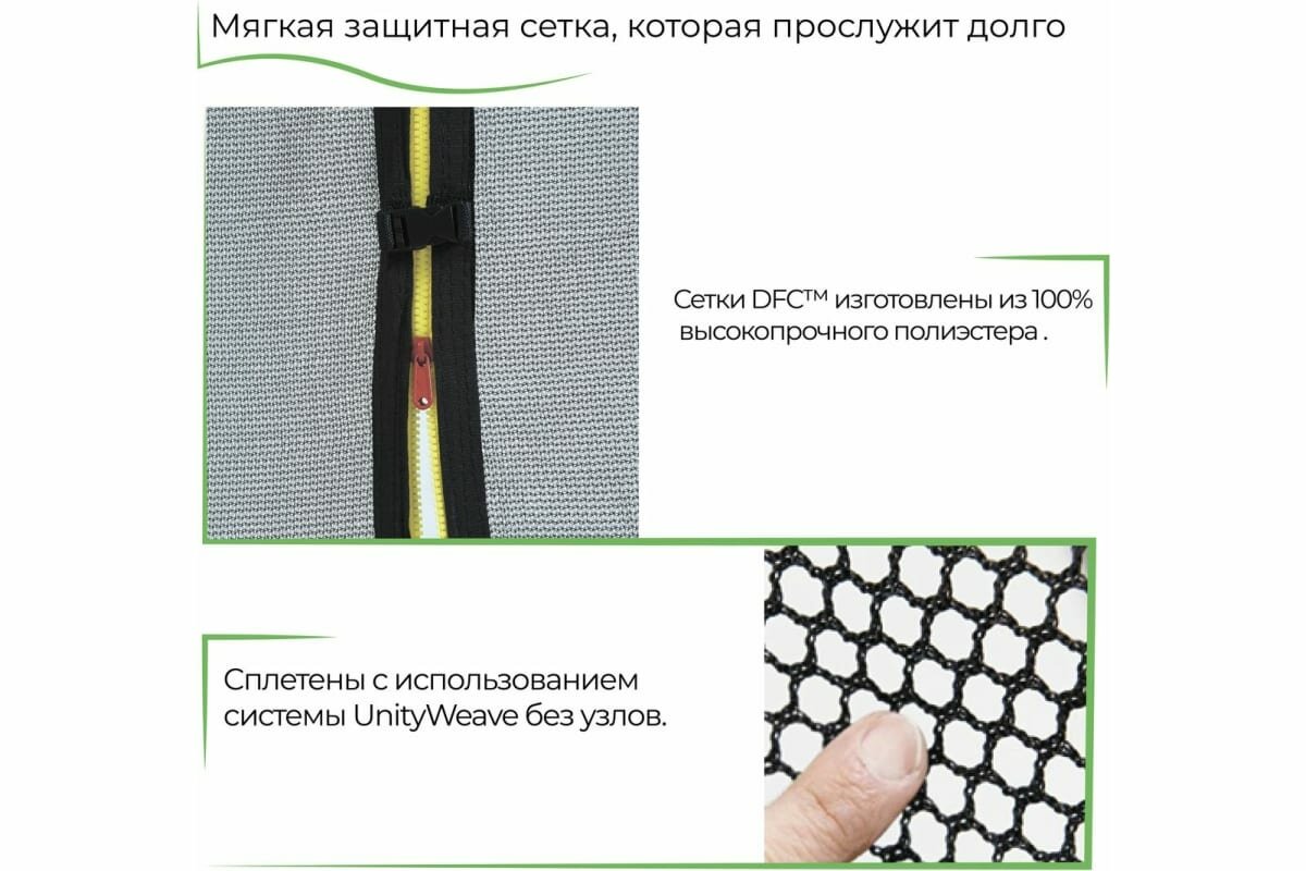 Батут с защитной сеткой DFC Trampoline Fitness 12FT зеленый внешняя сетка