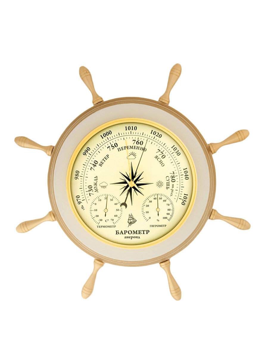 Метеостанция механическая бриг КМ91325ТГБ-1-ЭП. Штурвал. Настенная . Барометр , термометр, гигрометр . интересное: