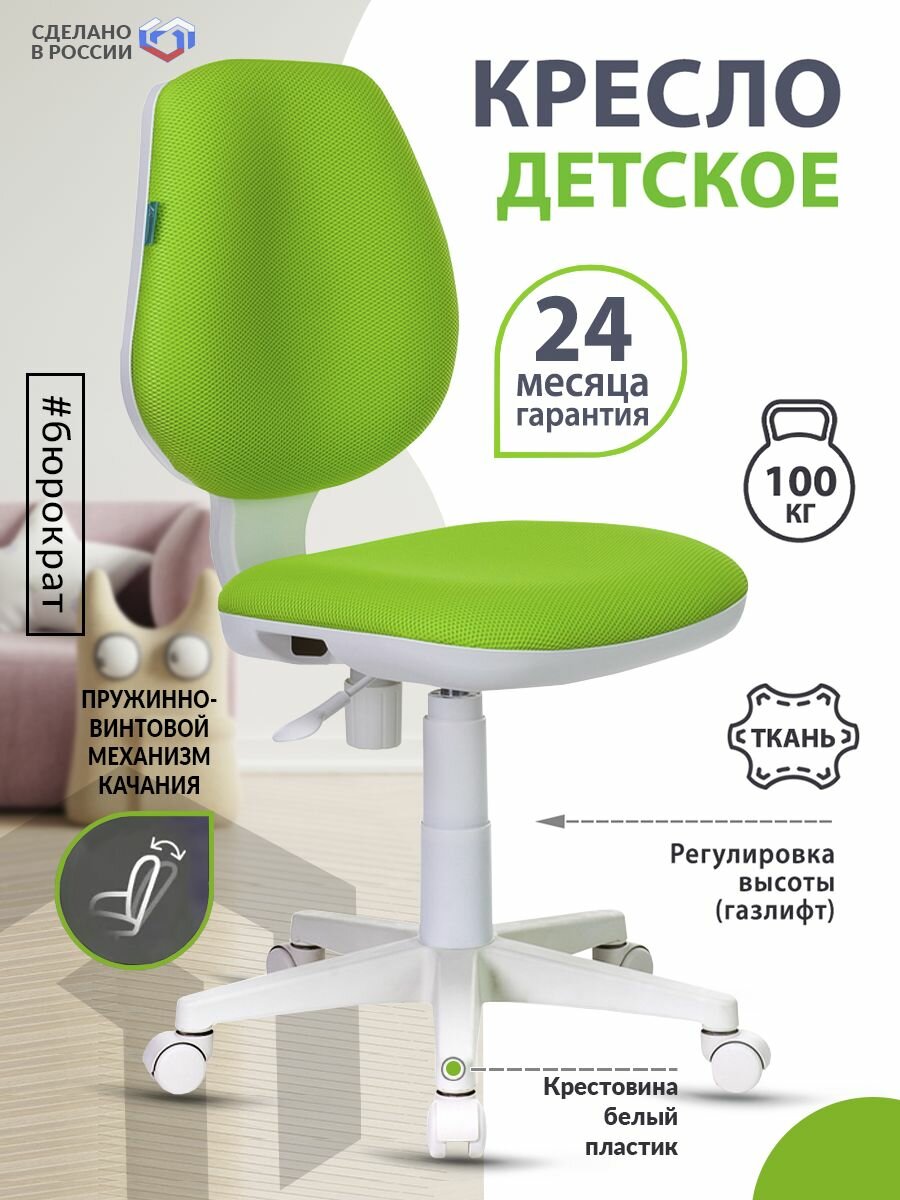 Купить Кресло детское Бюрократ CH-W213/TW-18 салатовый TW-18 (пластик белый)