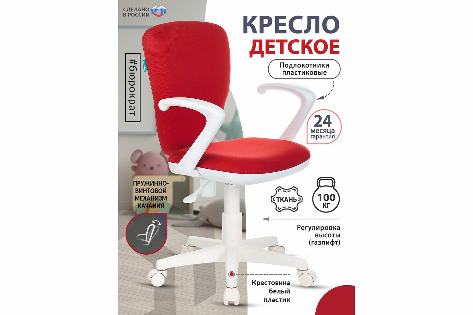 Детское кресло Бюрократ KD-W10AXSN красный 26-22, крестовина пластик, пластик белый 1162187
