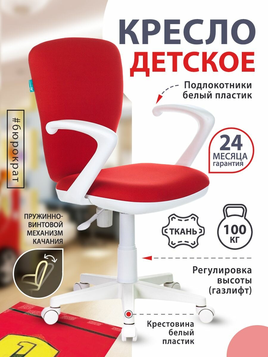 Кресло детское Бюрократ KD-W10AXSN красный 26-22 крестовина пластик пластик белый