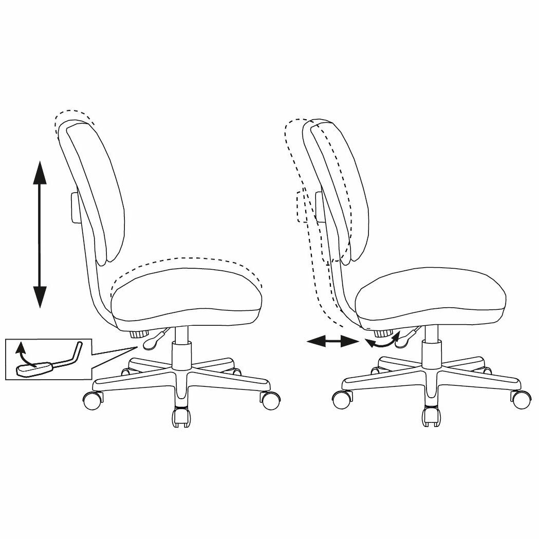 Кресло компьютерное Бюрократ CH-W204NX, стул детский на колесиках без подлокотников, с низкой спинкой, ткань