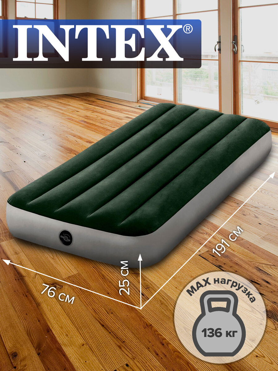 Надувной матрас intex, 76 х 191 х 25 см, Dura-beam twin Airbed Intex 64106, без насоса