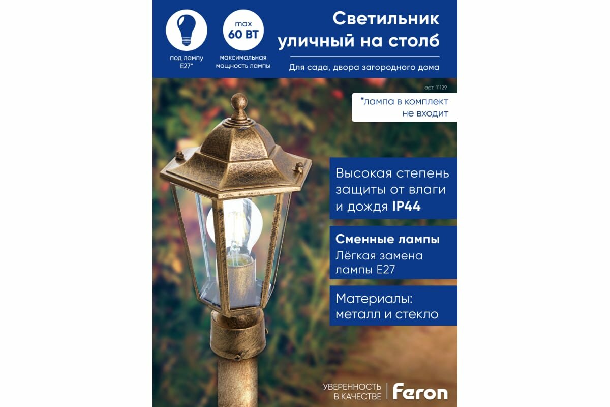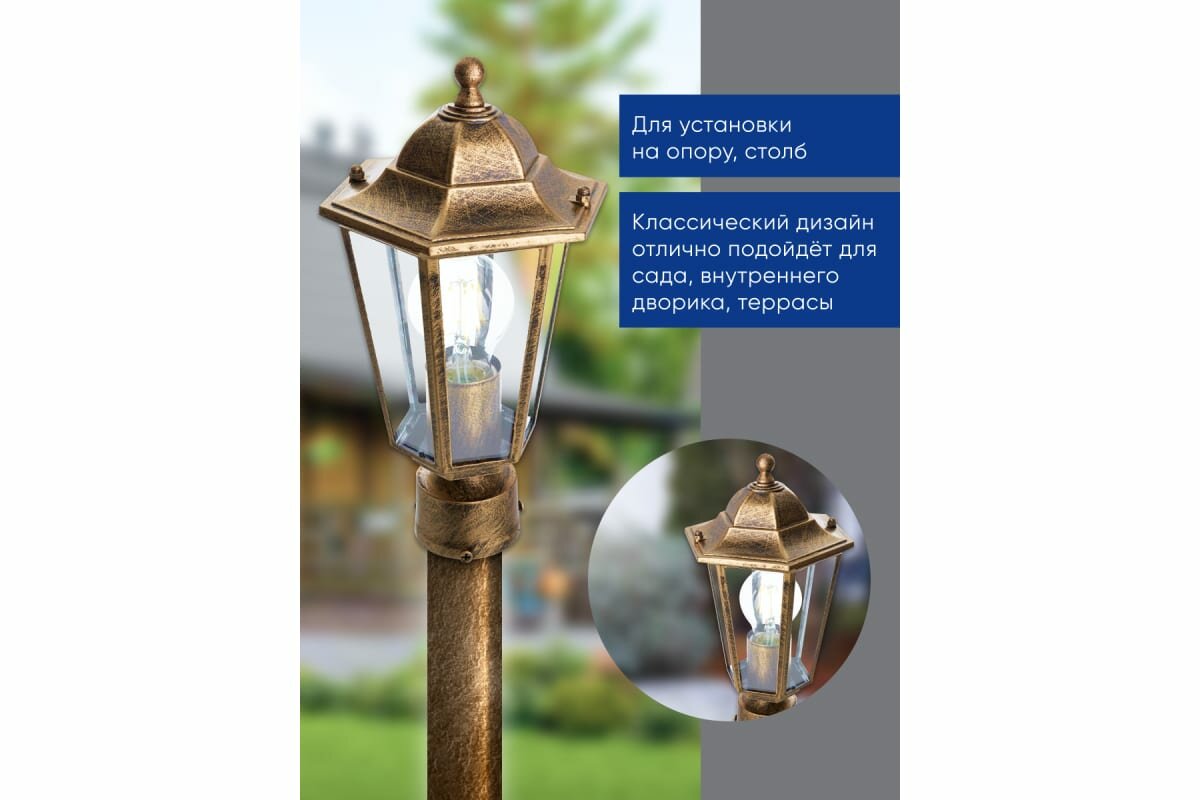 Садово парковый светильник на столб Feron 6103 11129, E27, 60 Вт, цвет арматуры: черное золото