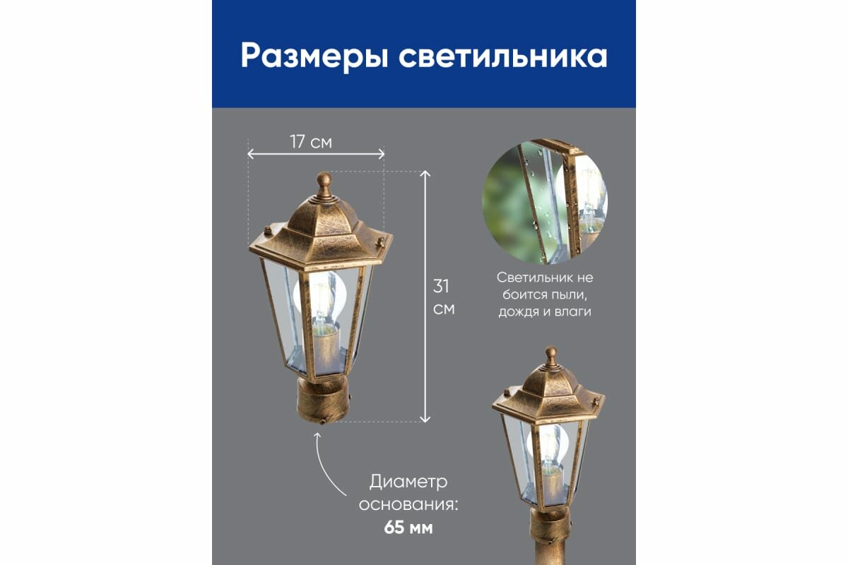 СохранитьСветильник садово-парковый Feron 6103/PL6103 шестигранный на столб 60W E27 230V, черное золото 11129 интересное: