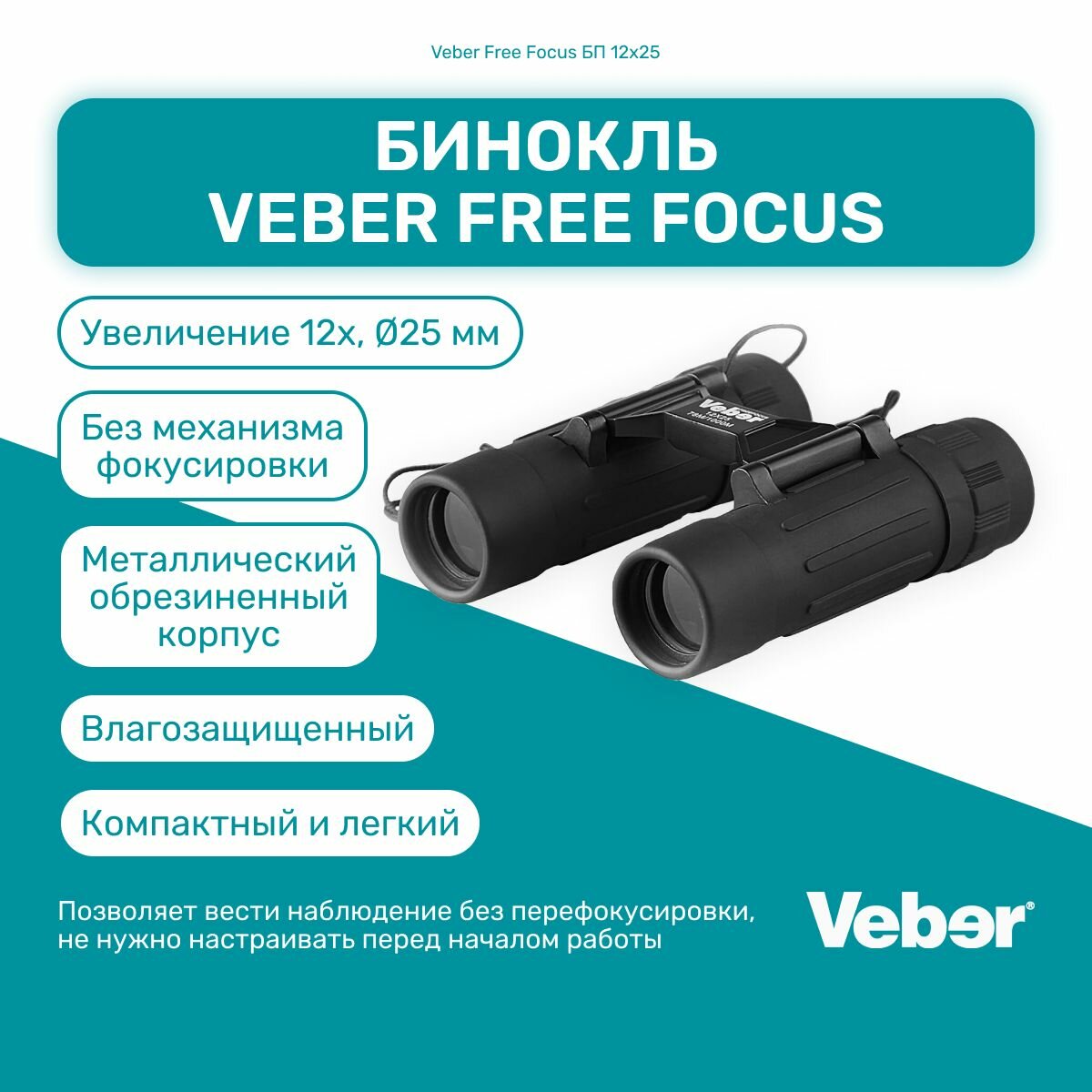 Бинокль Veber Free Focus БП 12x25 интересное: