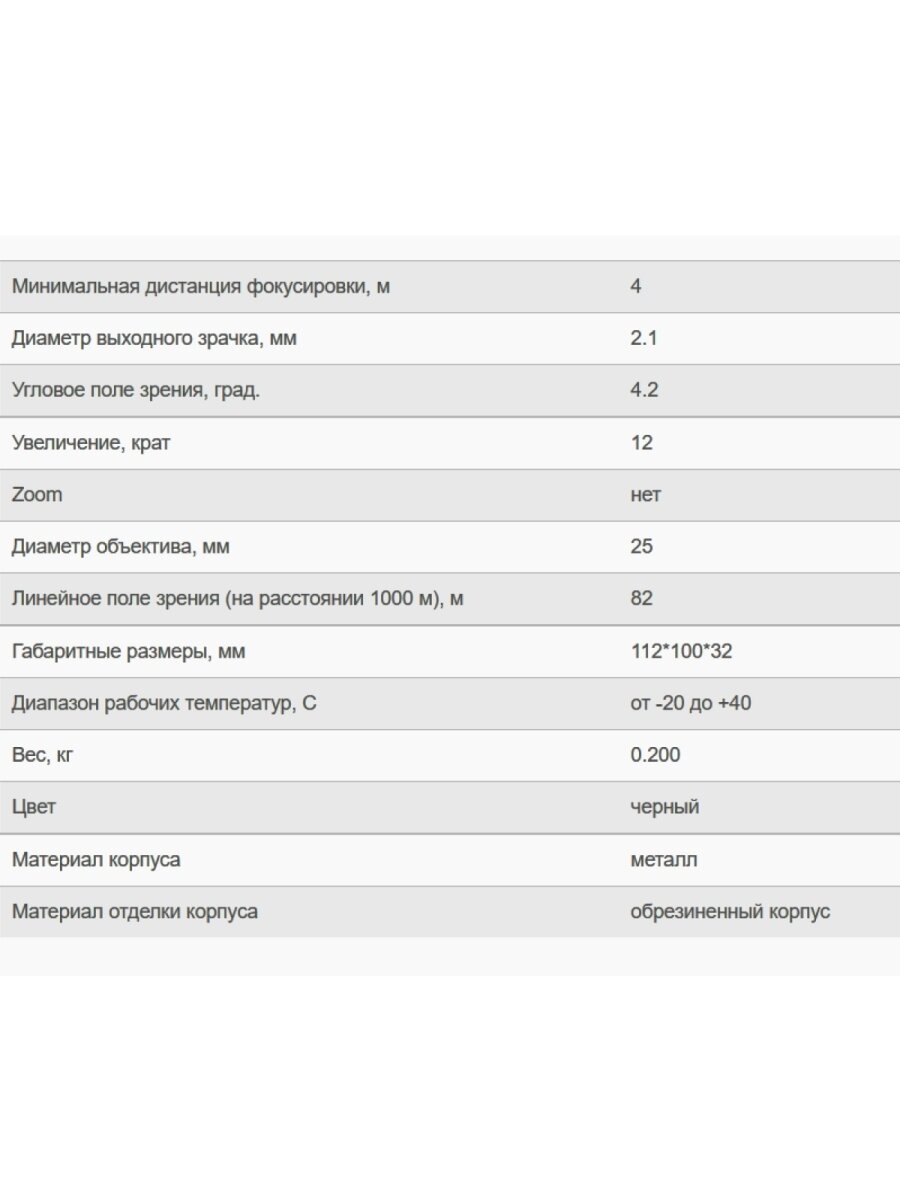 | Поле зрения на расстоянии 1000 м | 82 м |