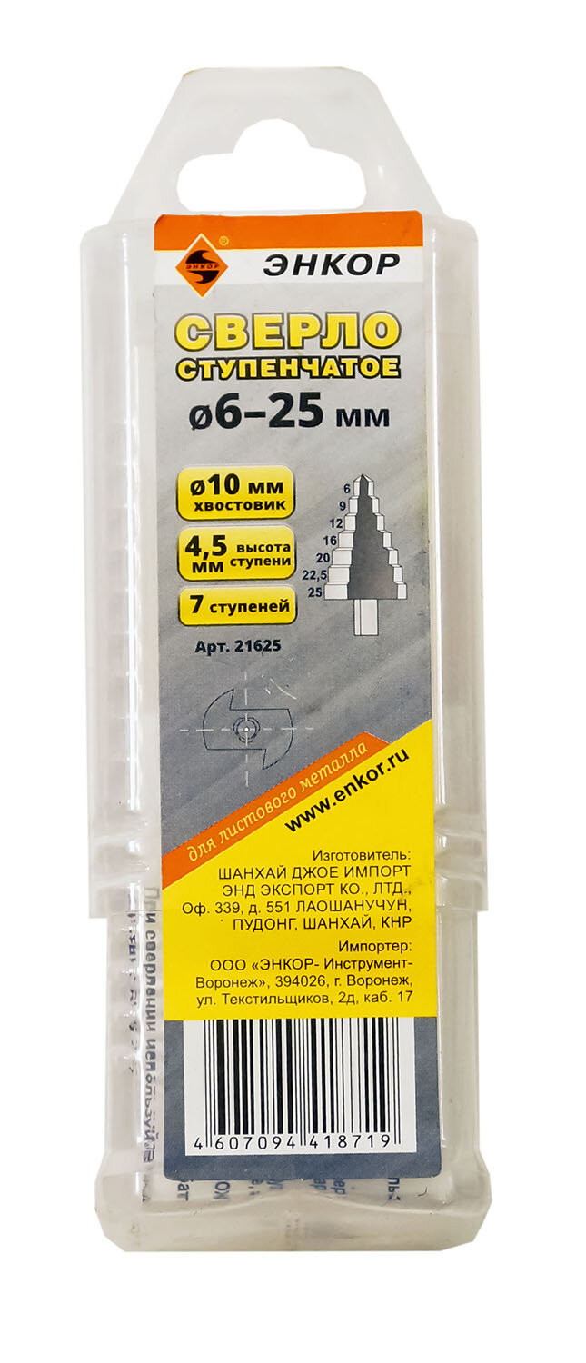Сверло ступенчатое (6-25 мм; 7 ступеней; ход 4.5 мм) по металлу Энкор интересное: