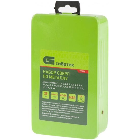 Набор сверл по металлу СИБРТЕХ 72379, 1-13 мм (через 0.5 мм), 25 шт., HSS, в металлической коробке интересное: