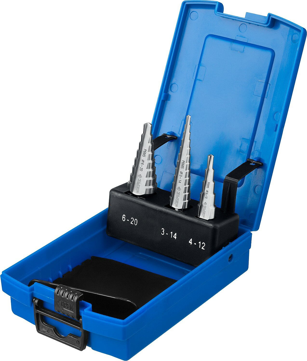 Набор ЗУБР 29670-3-20-H3_z01 ступенчатых сверл по сталям и цвет. мет. ст. Р6М5, d=3-14мм, 12ступ. d=4-12мм 5 ступ., d=6-20мм 14ступ.