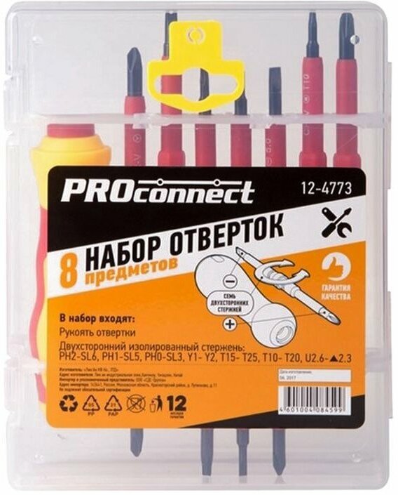 Набор отверток PROconnect 12-4773, 8 предметов, двухкомпонентная рукоятка 6834634 .