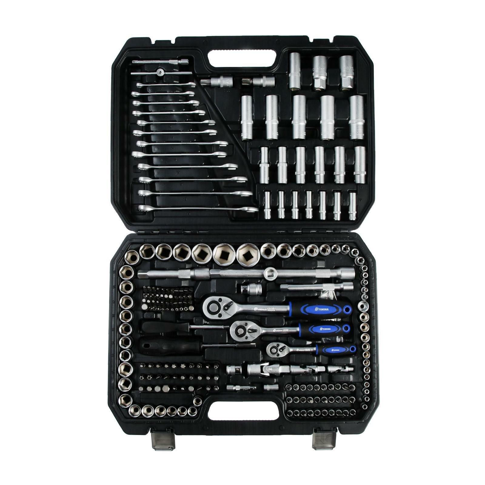 Набор инструментов в кейсе TUNDRA, автомобильный, CrV, 1/2", 1/4", 3/8", 215 предметов 881836 .