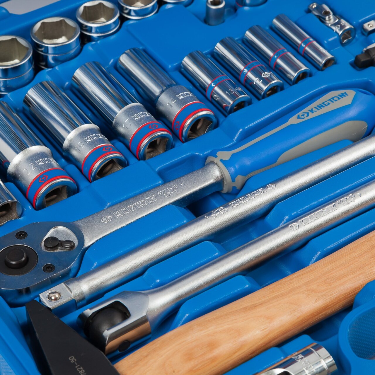 KING TONY Набор инструментов универсальный 1/2", 1/4", головки, трещотка, молоток, 110 предметов 7510MR