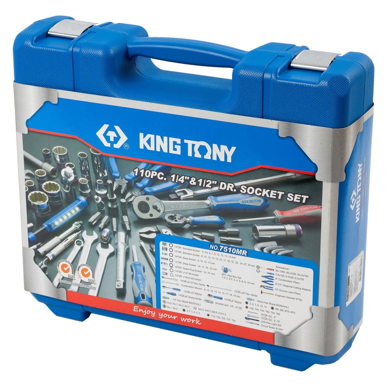 7510MR KING TONY Набор инструментов универсальный 1/2", 1/4", головки, трещотка, молоток, 110 предметов