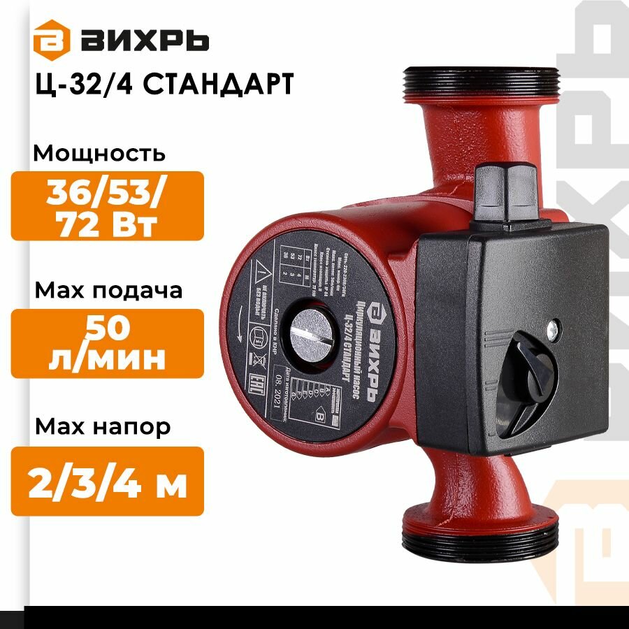 Насос / Циркуляционный насос Вихрь Ц-32/4 стандарт (72 Вт, 50 л/мин, напор - 4 м, 3 режима)