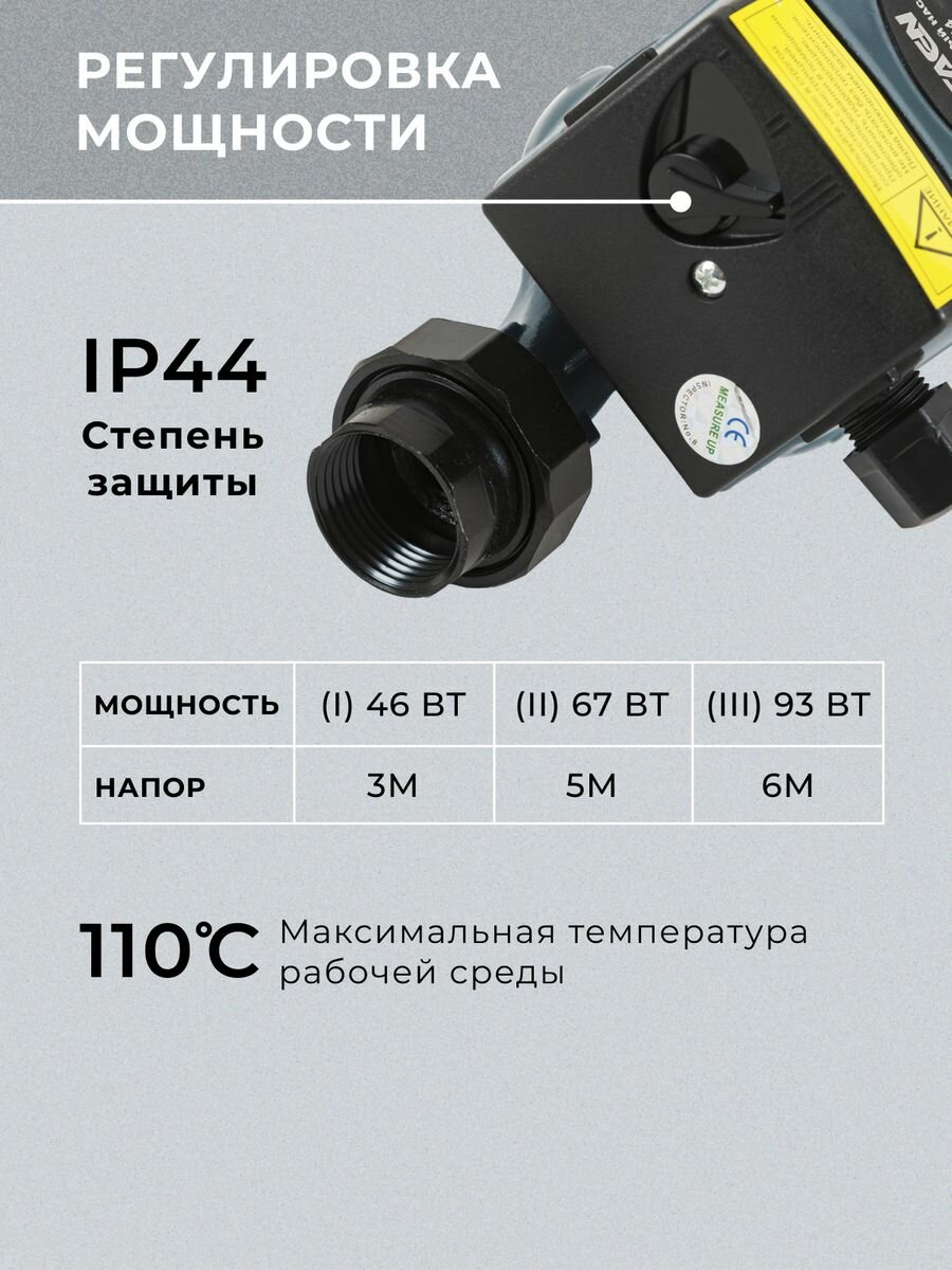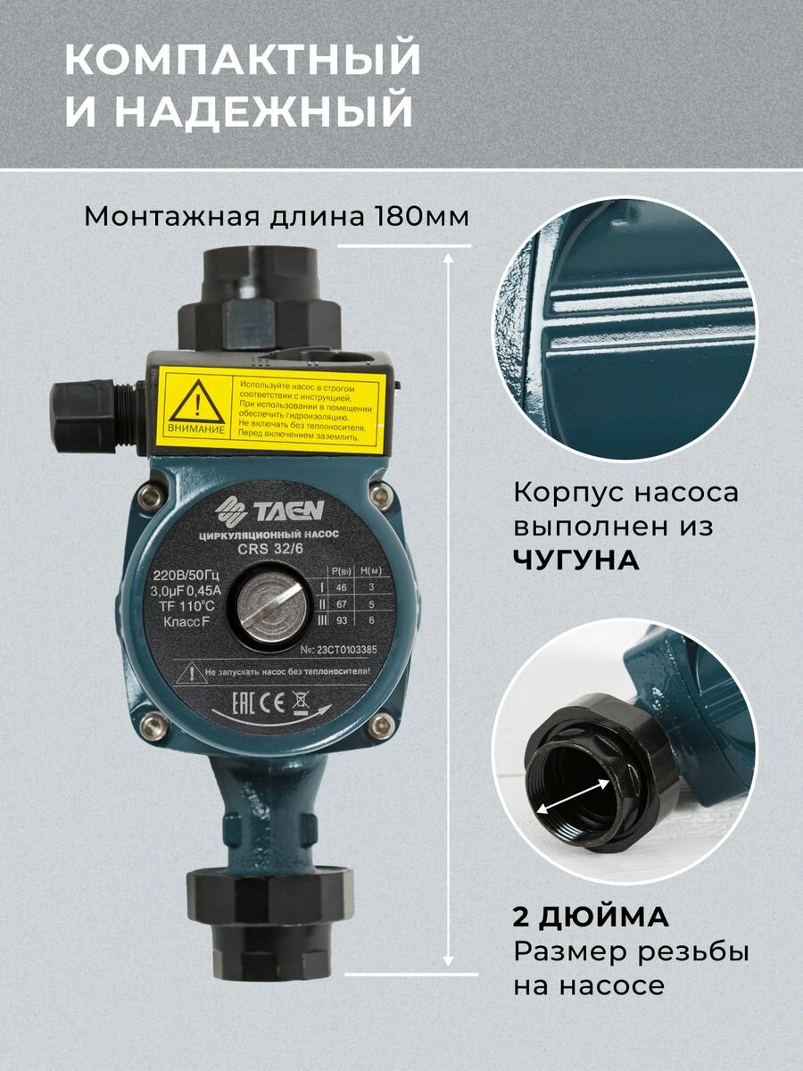 Циркуляционный насос TAEN CRS, 93Вт, 3м³/час, чугунный, с гайками