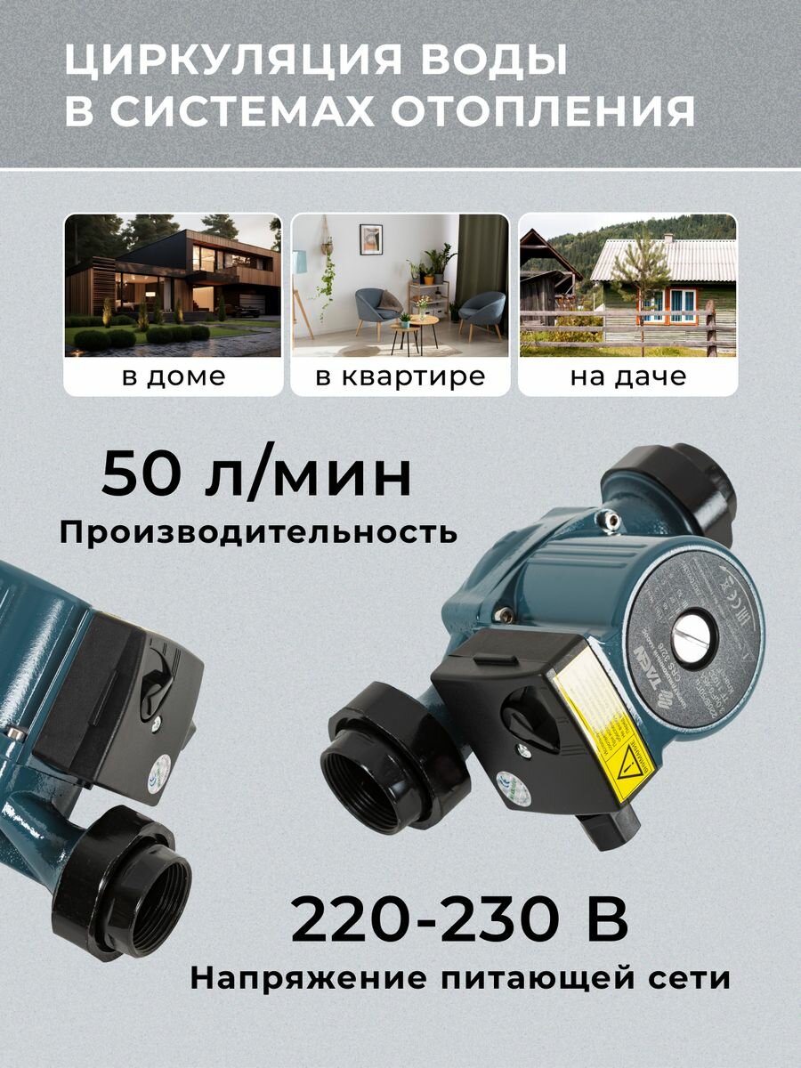 Насос циркуляционный TAEN СRS32/6, напор 6 м, 50 л/мин, 46/67/93 Вт интересное: