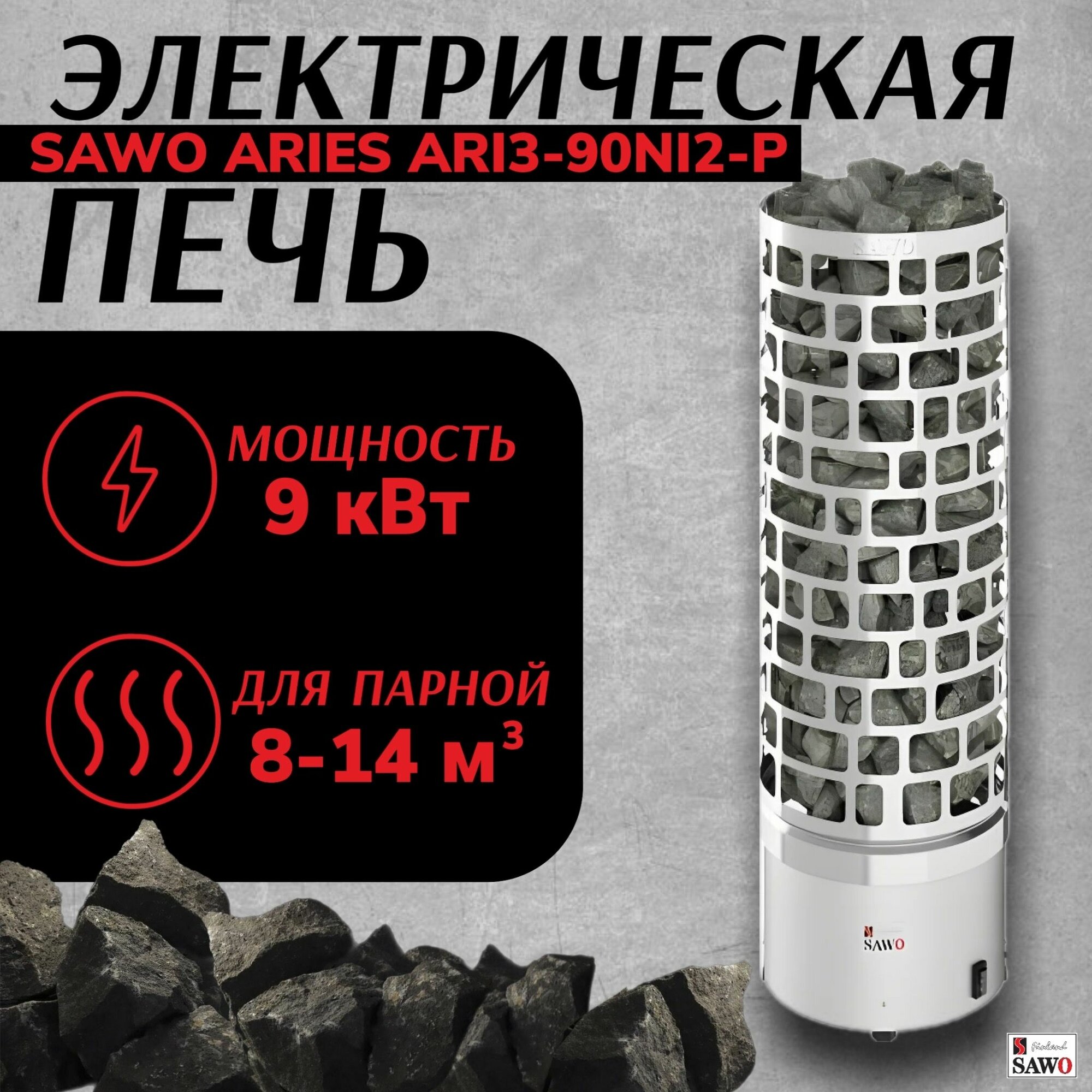 Печь для сауны Sawo Aries ARI3-90Ni2-P (с блоком, без панели Saunova)