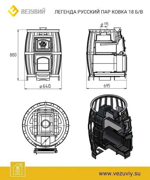 Печь для бани дровяная везувий легенда русский ПАР Ковка 18 (270)