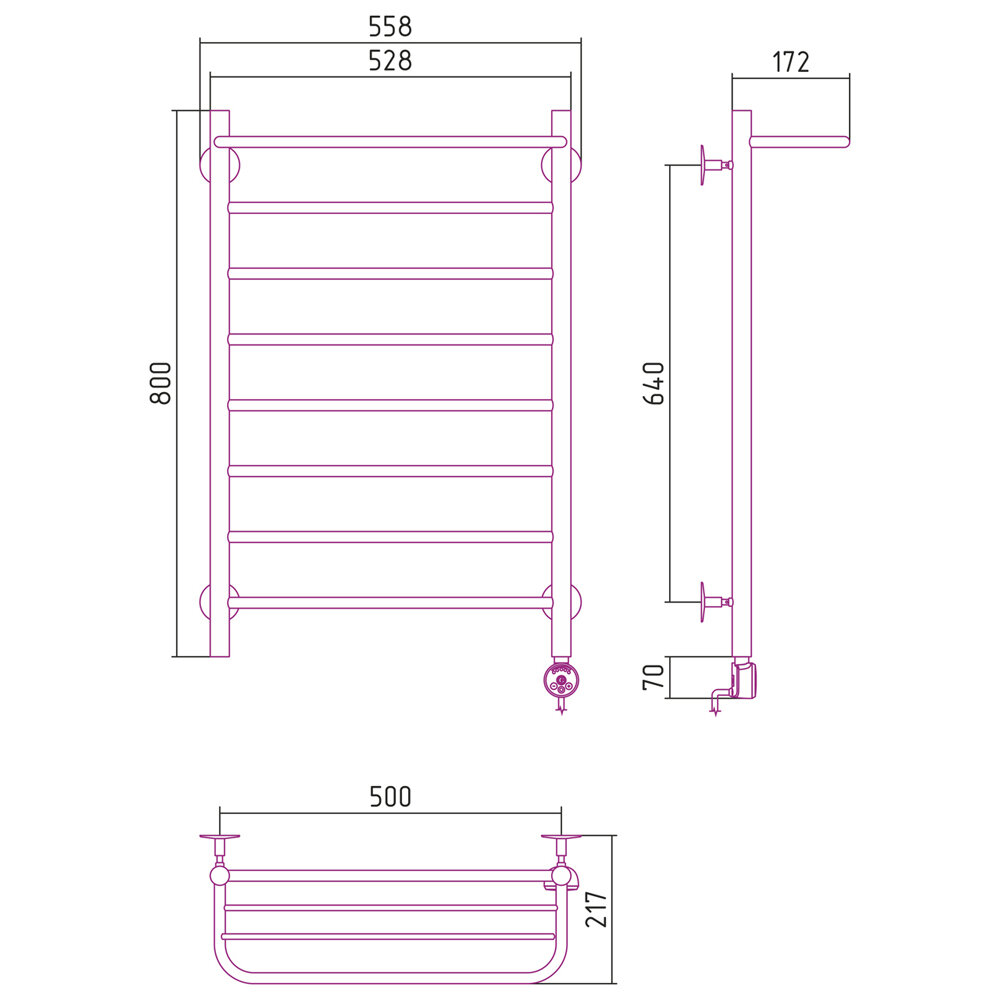 Полотенцесушитель электрический Стилье Формат 20 ТЛ 800х500 (Полка + 7) П16 Без покрытия 00521-8050