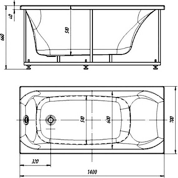 Акриловая ванна Акватек Альфа 140x70 см