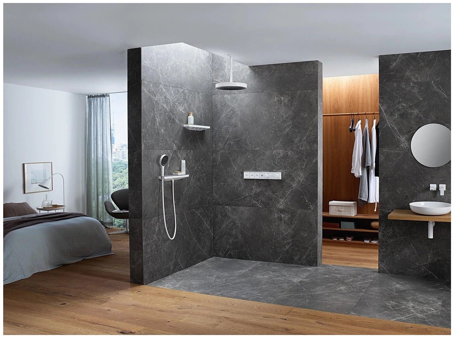 Боковой душ Hansgrohe Rainfinity с полкой белый матовый 26243700