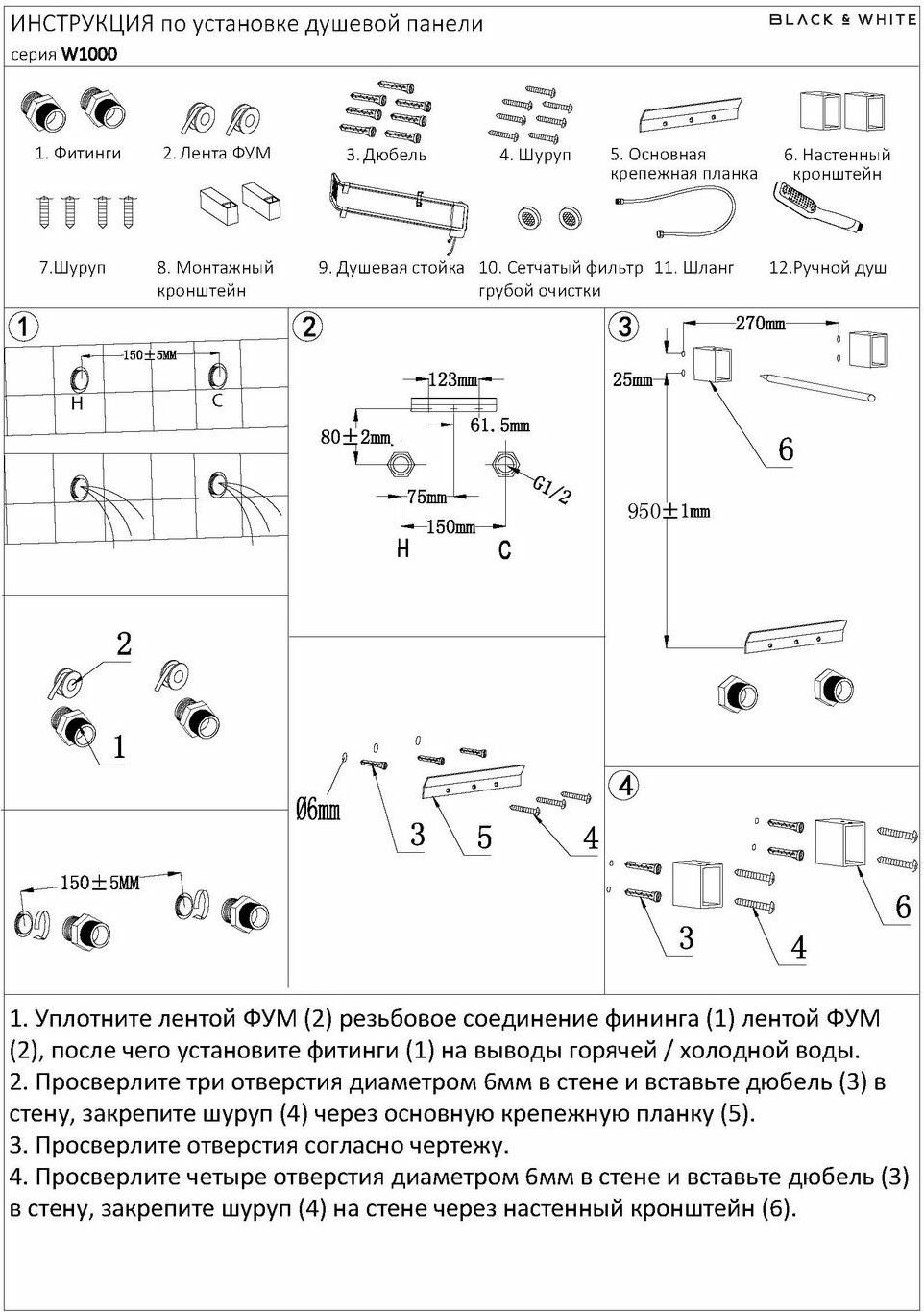 Black&White Душевая система Black & White W1010 1010W0 снежный белый