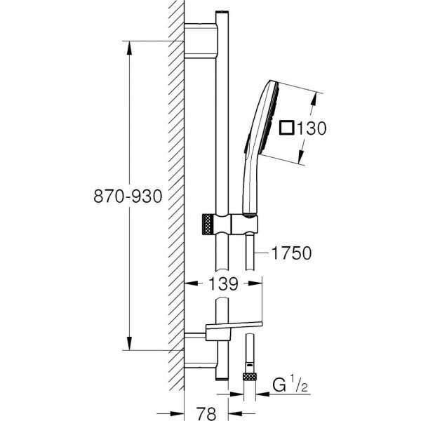 GROHE Душевой гарнитур GROHE Rainshower SmartActive 130 Cube, 3 вида струй, белая луна (26587LS0)