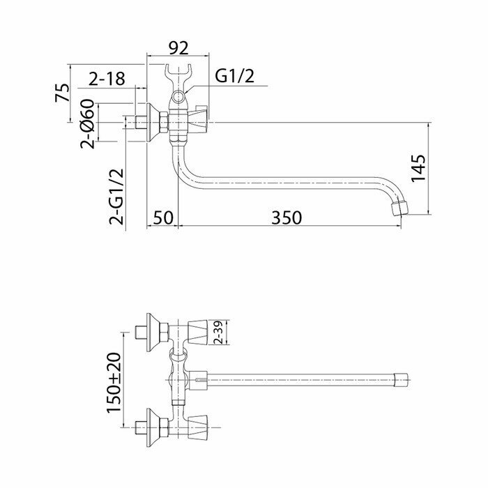 Смеситель для ванны и умывальника 1/2 кер Milardo TRISB02M10 "Tring" излив 350мм хром