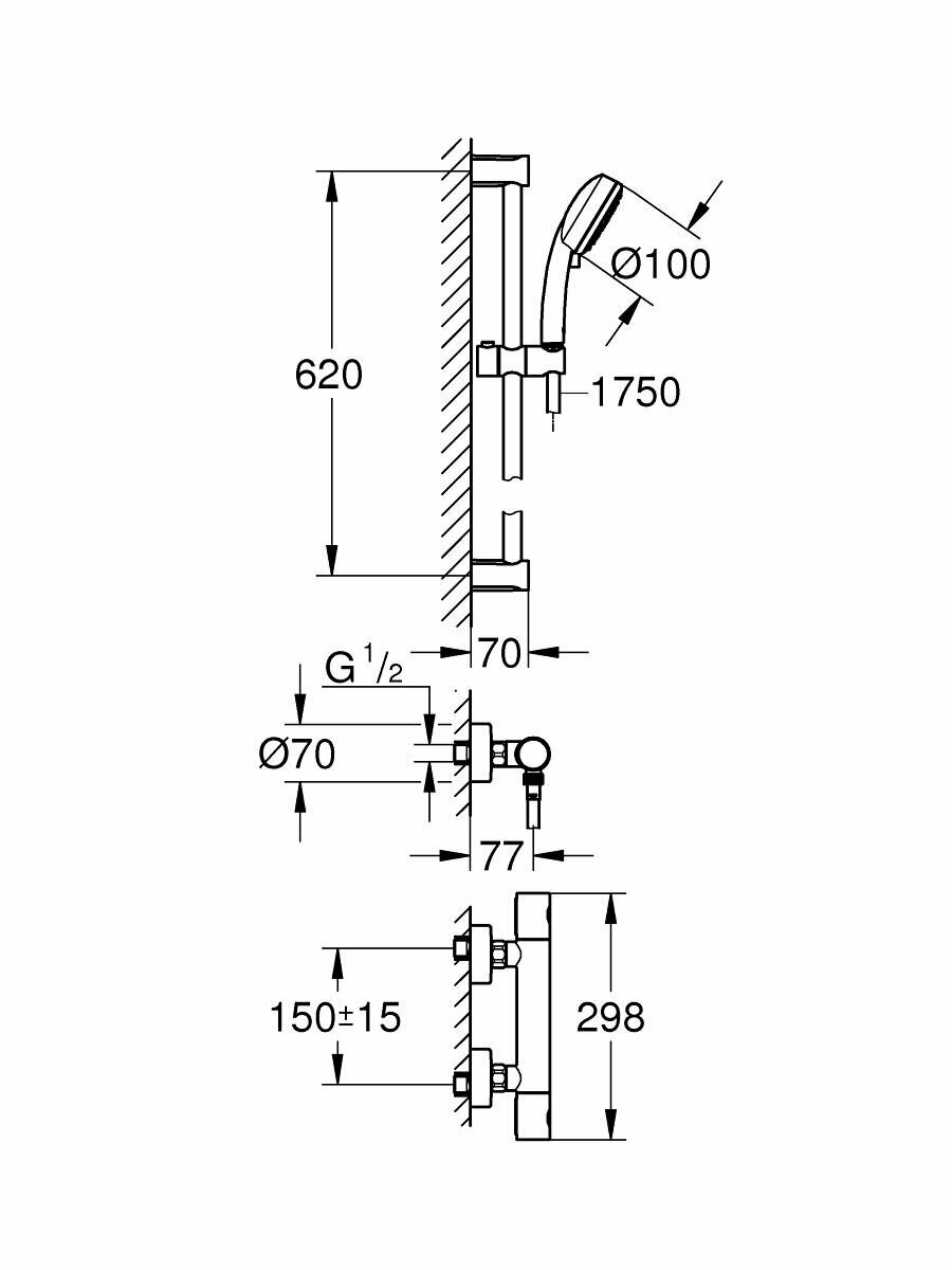 Grohe Grohtherm 800 Cosmopolitan Термостат для душа внешнего монтажа + Душевой гарнитур, 34768000