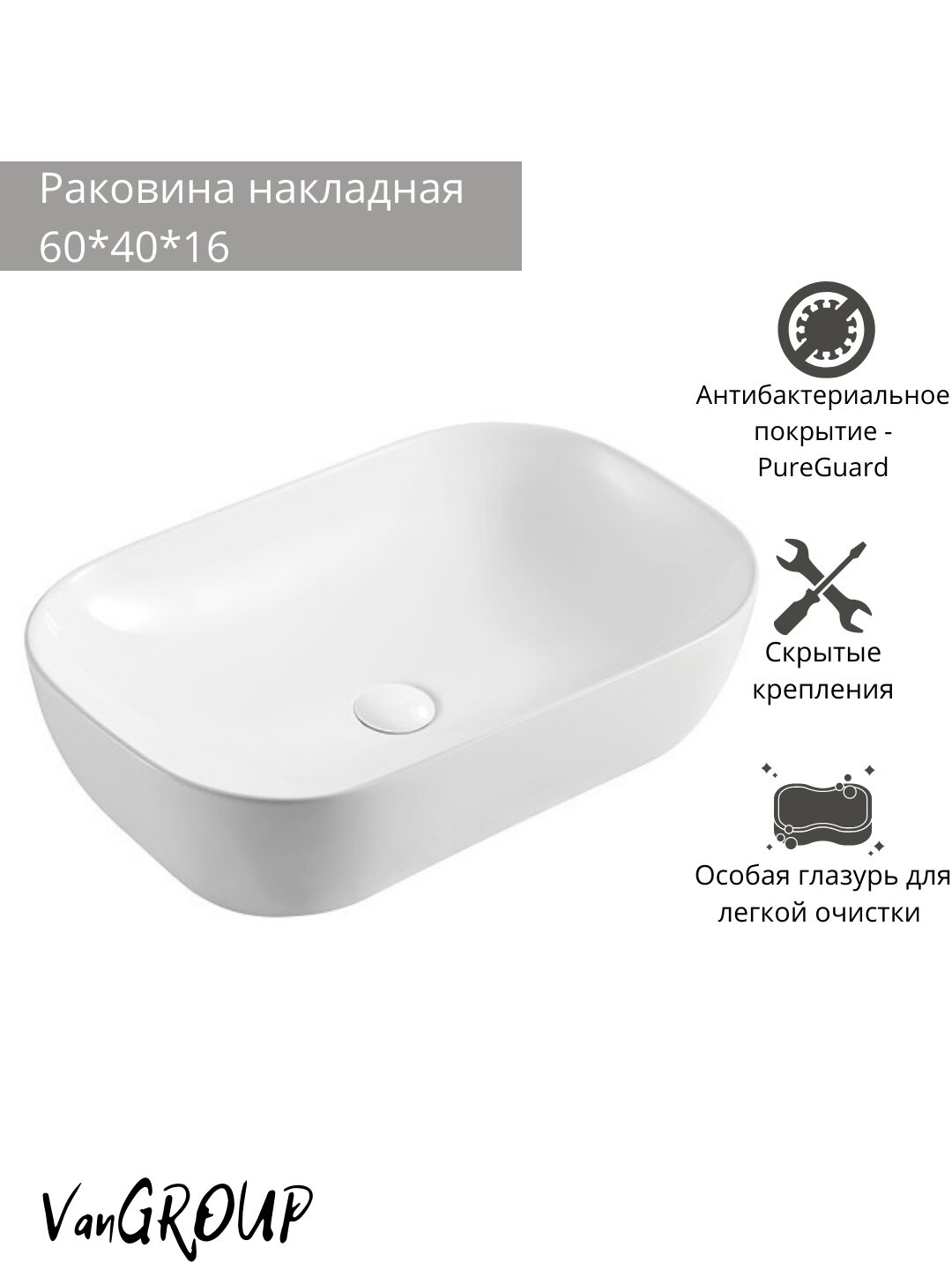 Раковина накладная WeltWasser 60/40/16 WW ELBACH 21434 10000003847