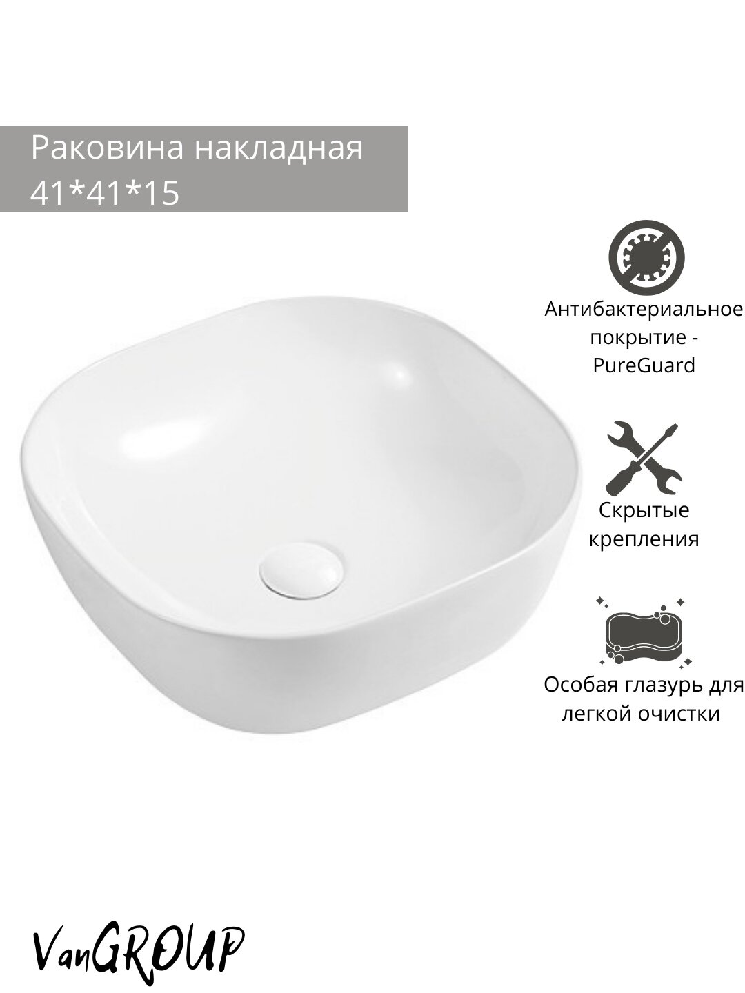 Раковина накладная WeltWasser 41/41/15 WW ELBACH 2144 10000003848
