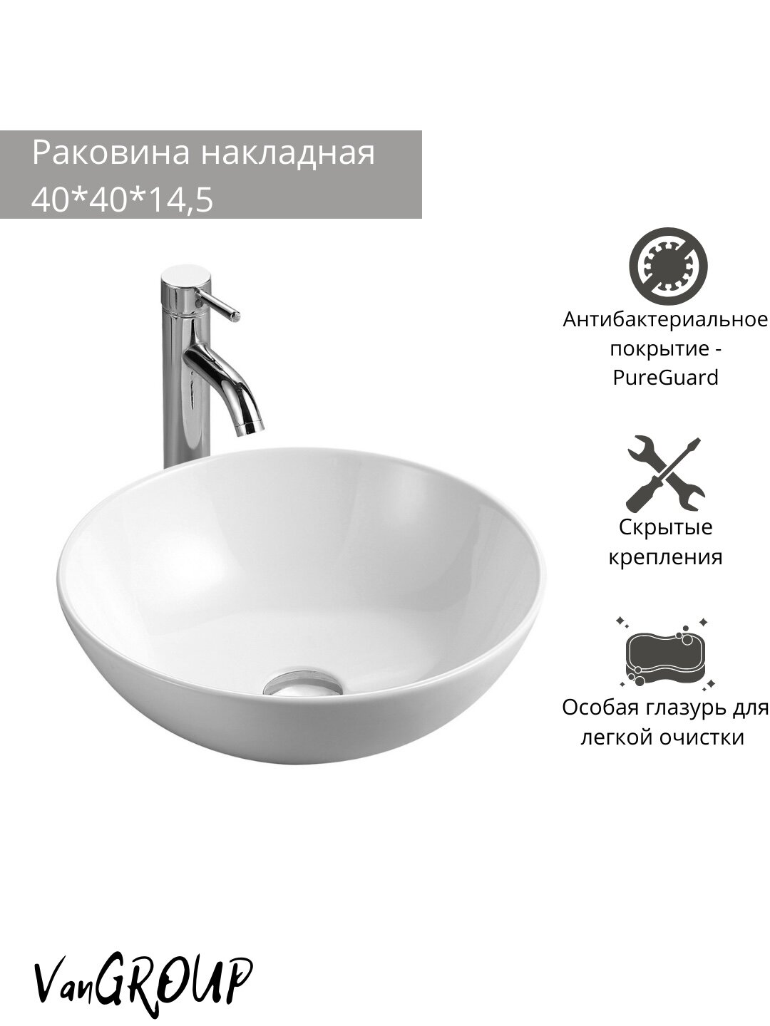 Раковина накладная WeltWasser 40/40/14.5 WW ELBACH 3003 10000003852