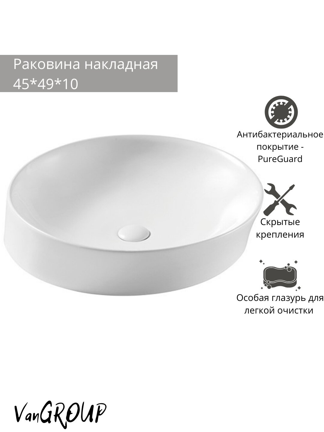 Раковина накладная WeltWasser 45/49/10 WW Elbach 3265 10000003829 белая