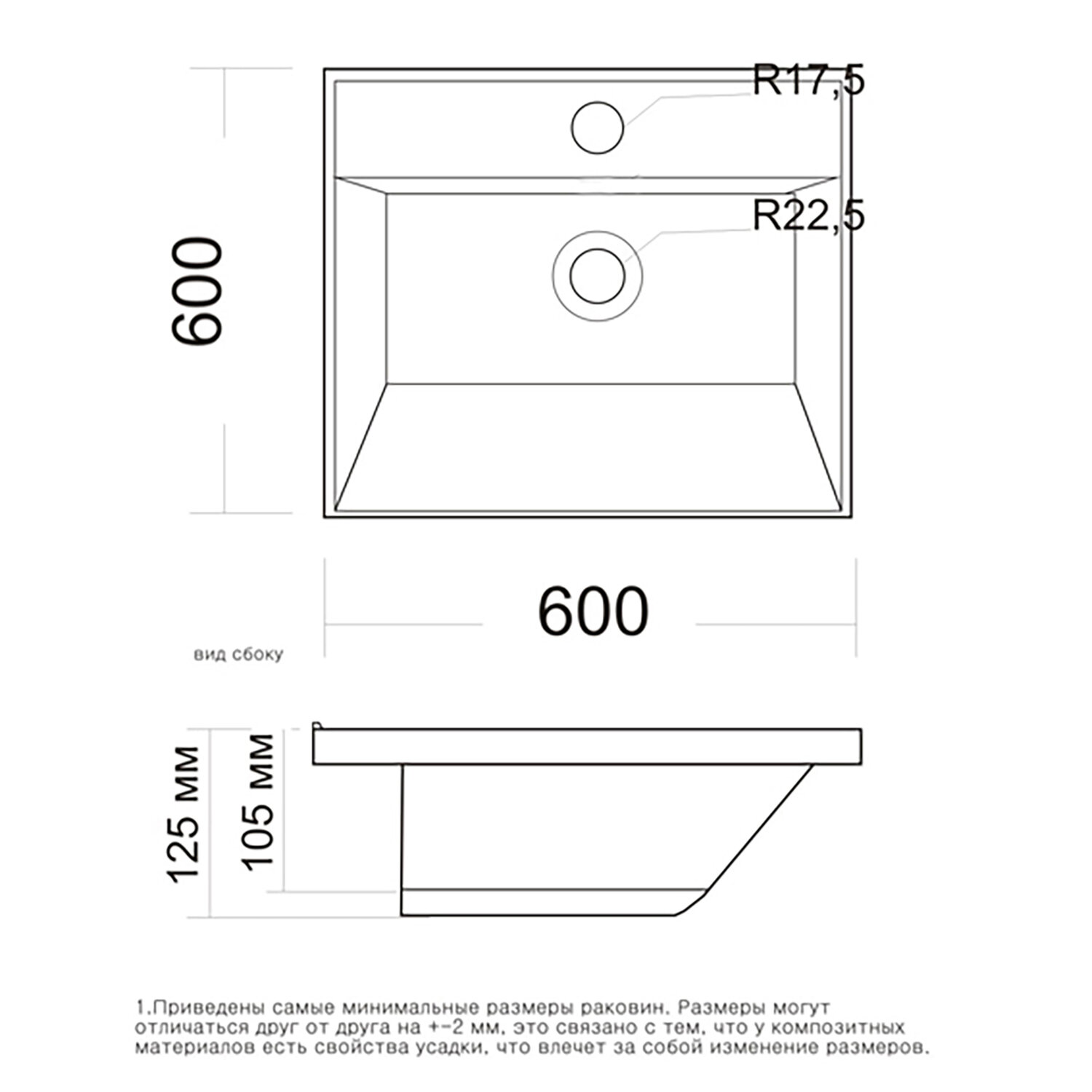 | Число отверстий под смеситель | 1 |