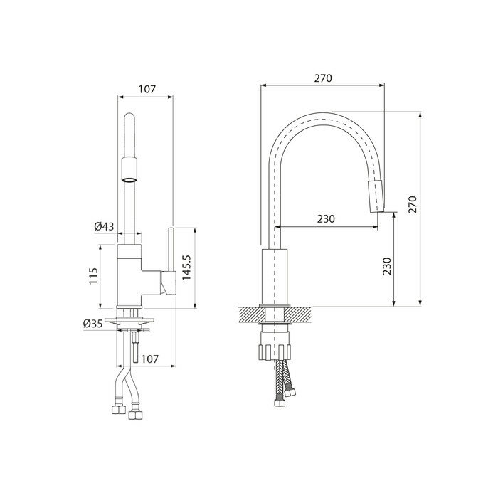 Смеситель для кухни с гибким изливом Iddis Kichen 360 K36SBJBi05 черный/хром