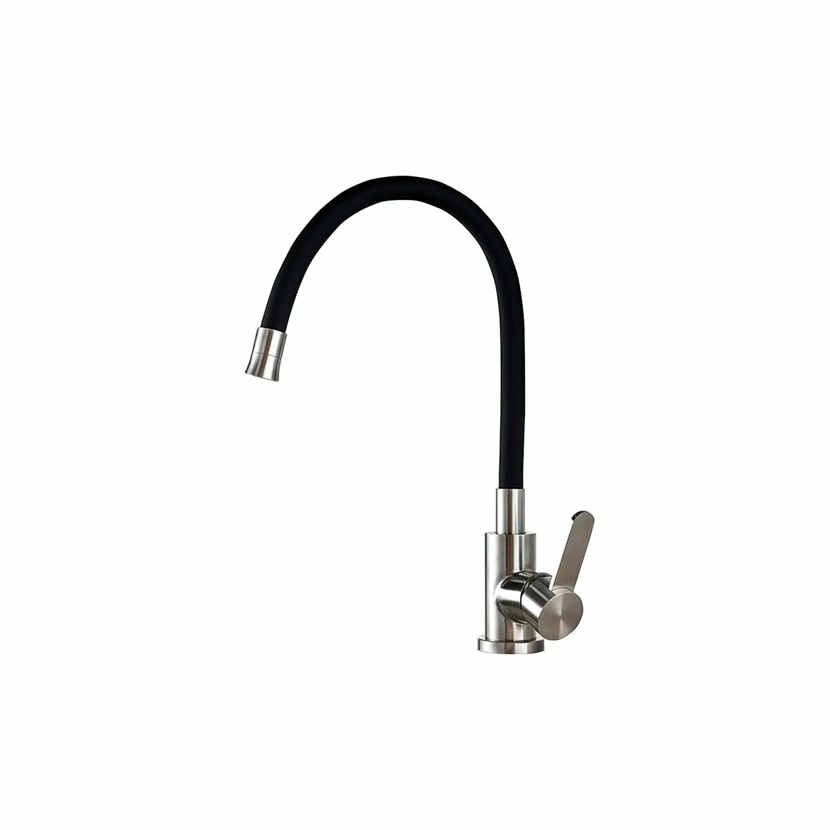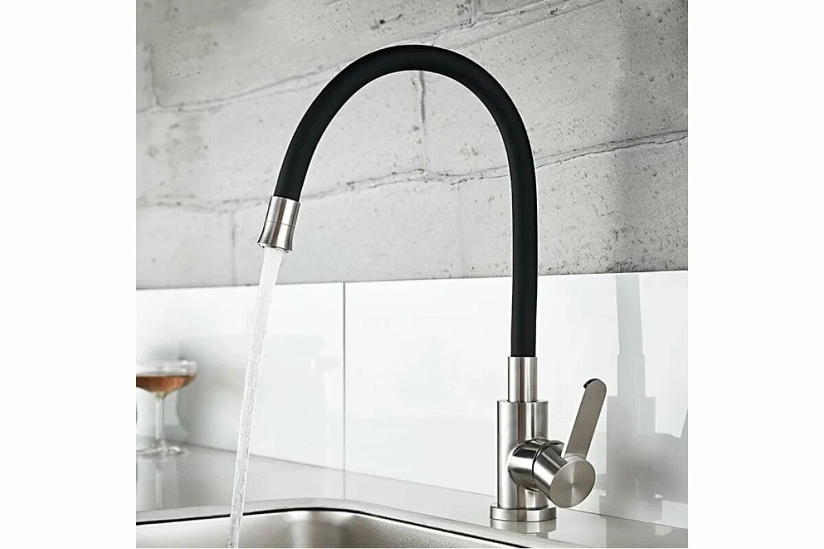 Смеситель для кухни, нерж.ст.+ силикон. излив (черный) Ledeme, 1/10; L74004-2