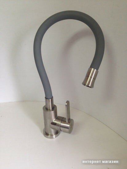 Смеситель для кухни, нерж.ст.+ силикон. излив (серый) Ledeme, 1/10; L74004-9