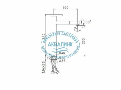 | Длина излива | 190 мм |