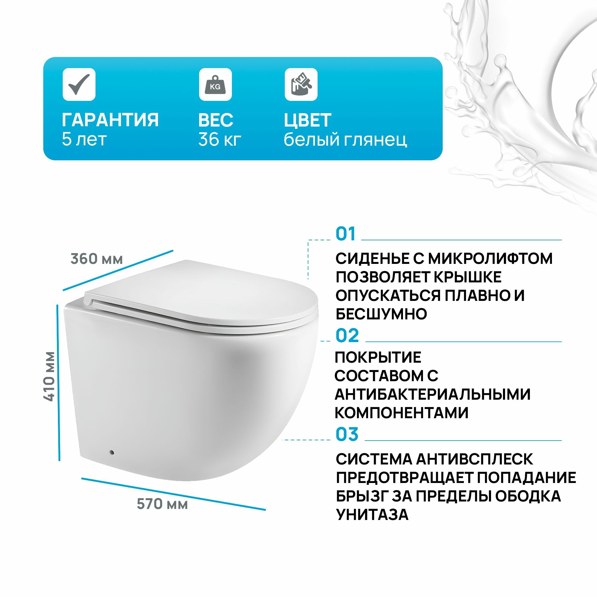 Унитаз WeltWasser Merzbach 002 GL-WT 10000003738 приставной Белый глянец с сиденьем Микролифт