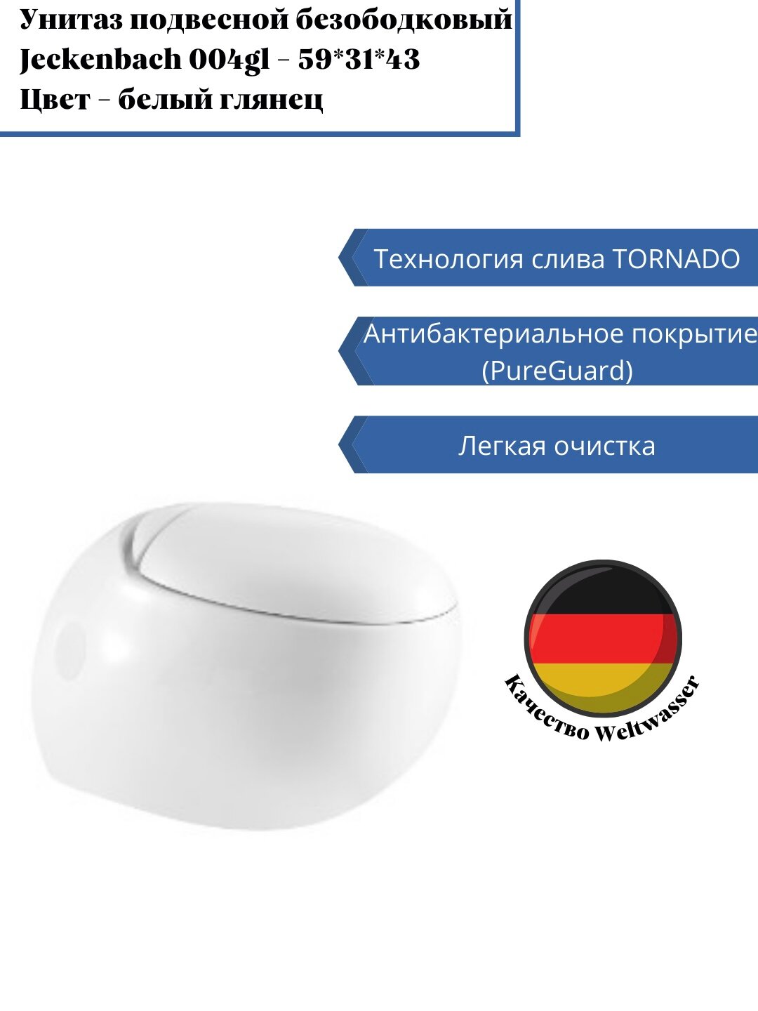 Унитаз подвесной WeltWasser JECKENBACH 004GL-WT, безободковый, с сиденьем микролифт, белый глянец