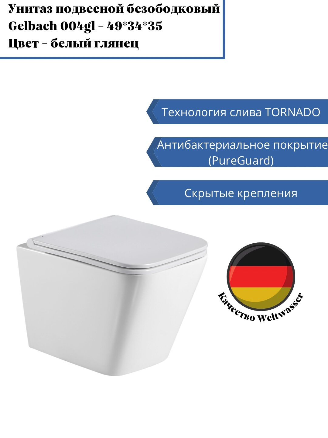 Унитаз WeltWasser Gelbach 004 GL-WT 10000003663 подвесной Белый глянец с сиденьем Микролифт