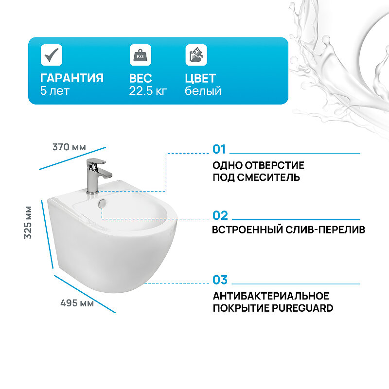 Биде подвесное WeltWasser MERZBACH 005GL-WT белый глянец