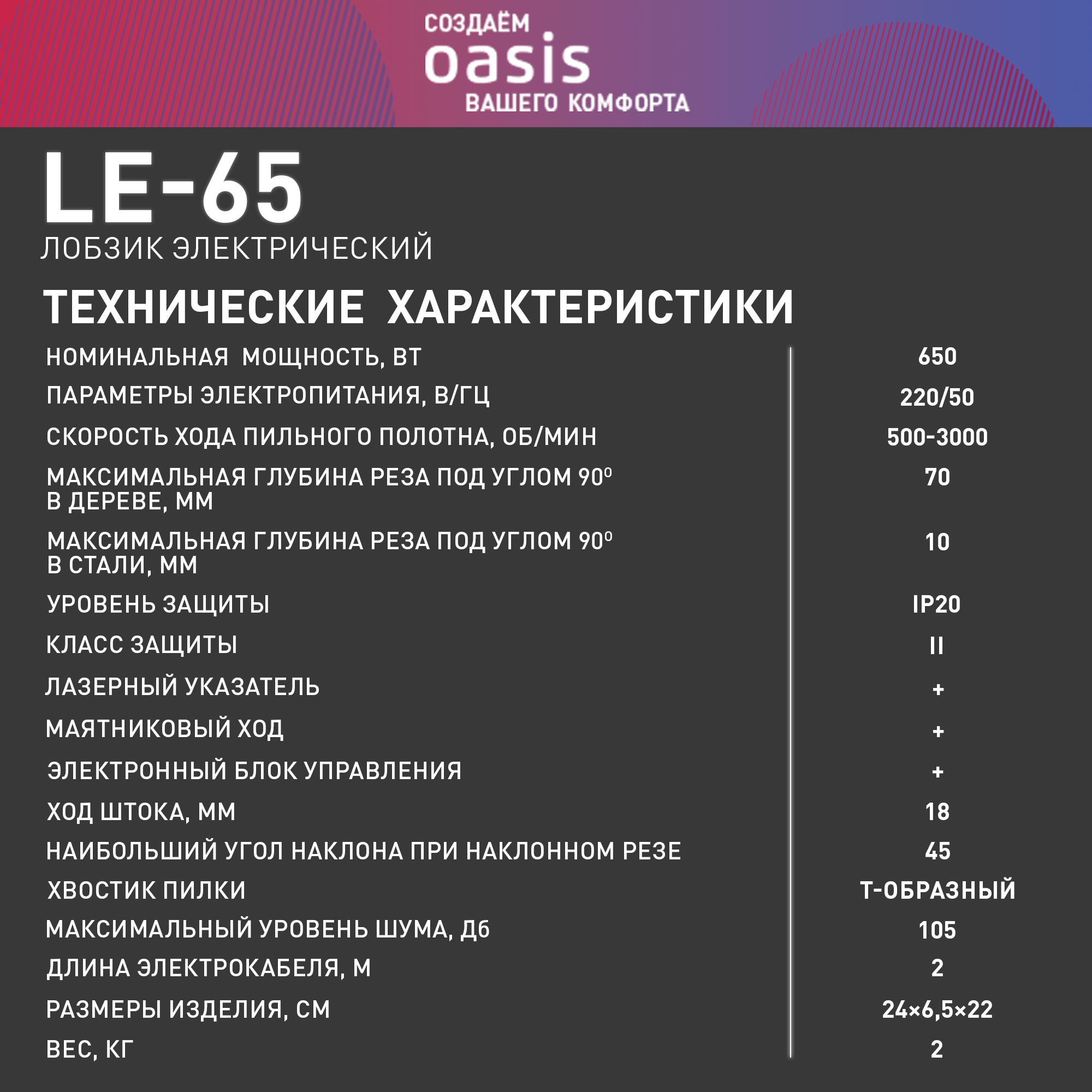 Лобзик LE-65 Oasis ( 650вт, дерево 65мм, сталь 10мм лазерный указатель)