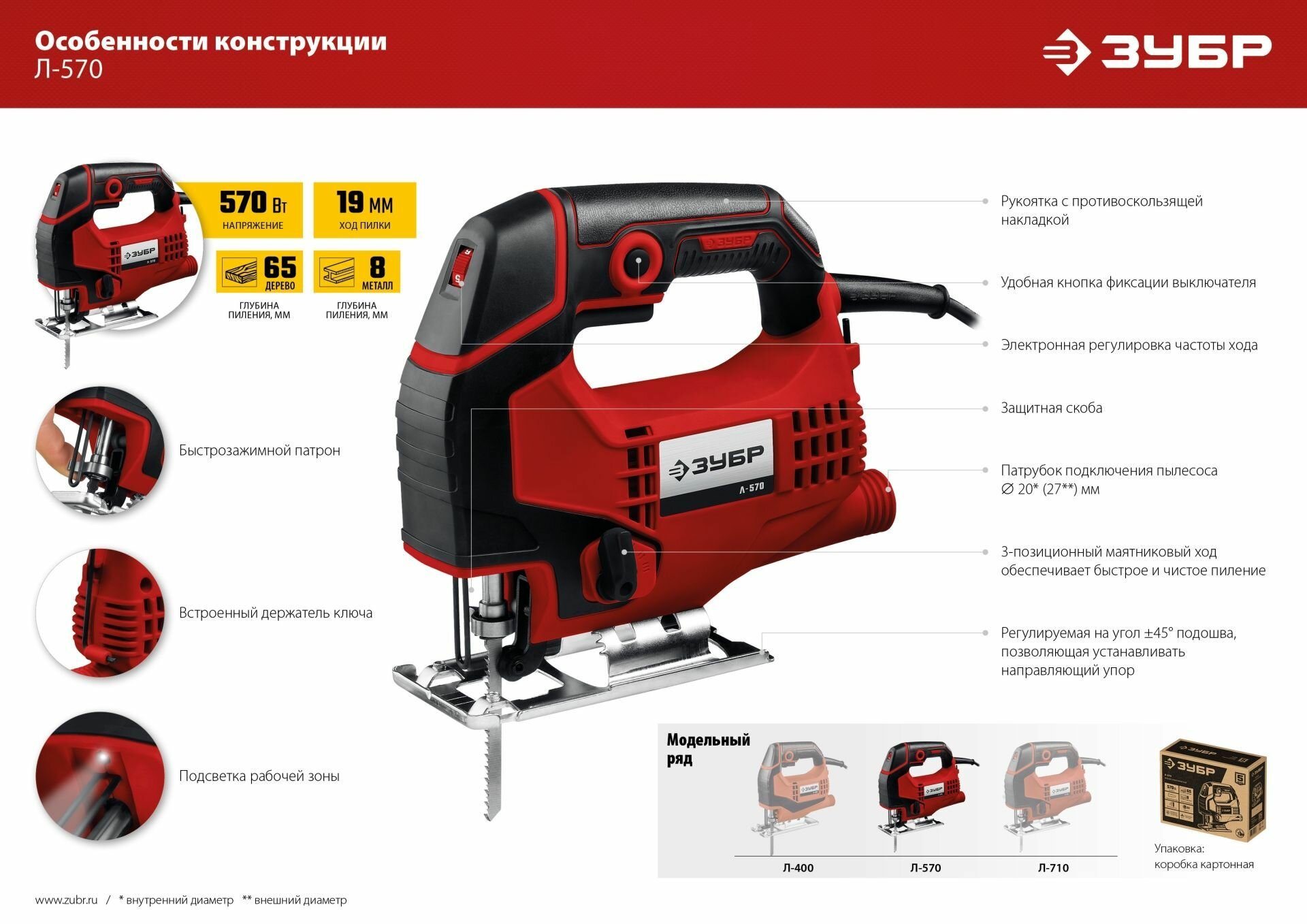 Электролобзик ЗУБР Л-570, 570 Вт (Л-570)